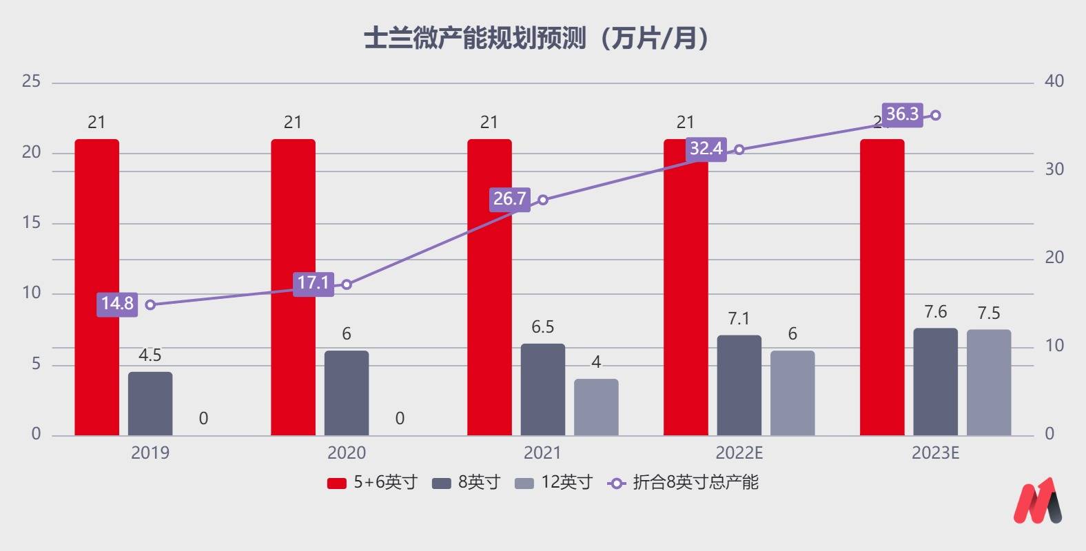 从产能上来讲,在芯片短缺的大背景下,产能的不断释放意味着可以获取更高的利润。目前公司的5寸和6寸全年满产,去年产量大约255万片。公司8英寸线基本饱和,预计2022年8寸线产能7万片每月,公司的12寸线产能不断释放,预计到2022年公司的12寸线产能由2021年年底的4万片提升至6万片/月。