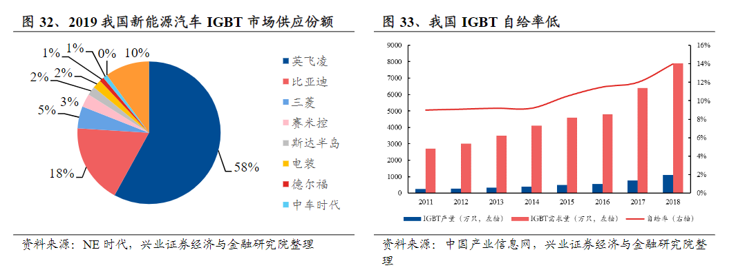 也就是说在国内新能源汽车领域,根据机构目前预测500万台销量计算,预计国内2022年的IGBT市场空间能达到70-80亿左右。