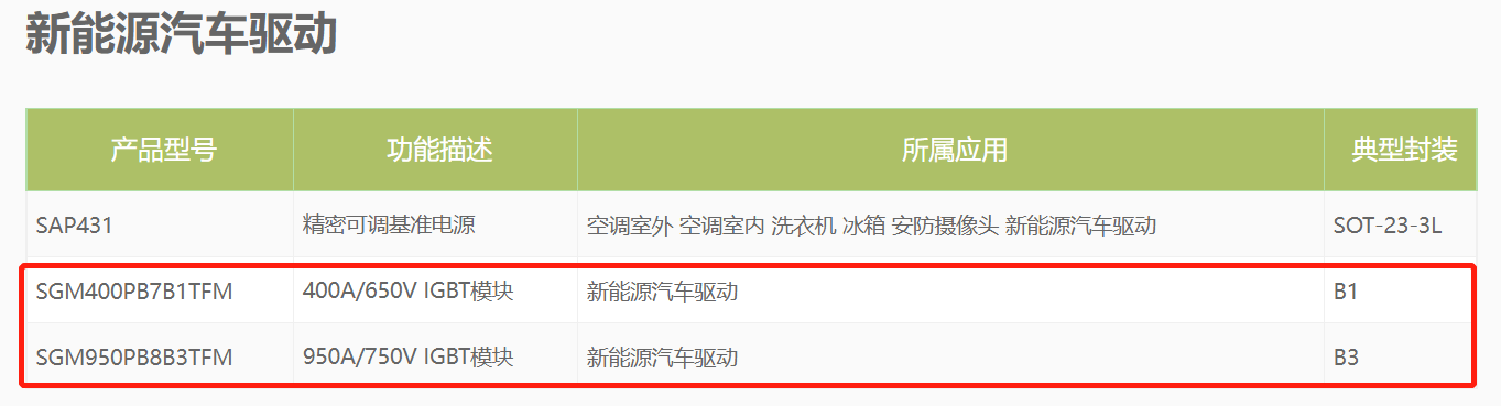 根据公司官网,目前汽车用IGBT模块主要为B1(400A/650V)模块和B3(950A/750V)模块。基于士兰微自主研发的V代IGBT和FRD芯片的电动汽车主电机驱动模块,已在国内多家客户通过测试,并已在部分客户批量供货,预计今年开始逐渐的放量。