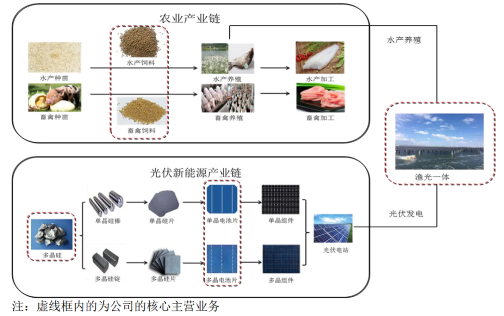作为硅料的龙头企业,通威股份的主要业务可以分为2类:(1)光伏业务,以高纯晶硅及化工、光伏电池、光伏组件为主;(2)农牧业务,以饲料、食品等为主。其中,光伏业务占主营收入的60.14%。