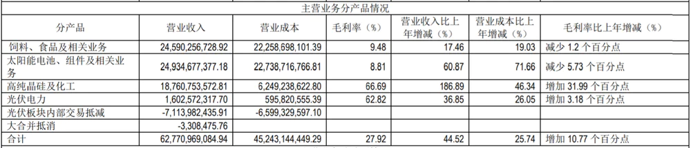 综合各业务来看,2021年公司的硅料因供不应求出现量价齐升,成为驱动业绩增长的主要动力。而电池片及组件业务、饲料相关业务对公司业绩贡献并不大。