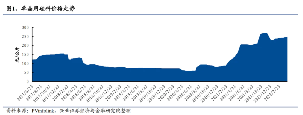 硅料作为光伏上游,其地位就犹如锂电池产业链的锂矿。近年来光伏产业各环节进行了积极的扩产,下游需求快速增长,而上游硅料环节因建设周期长、技术门槛高,2020年年底光伏抢装潮影响,硅料库存低,供给有限。因此,这便造成2021年硅料供不应求,单晶用硅料价格出现较大的涨幅。公司硅料业务的毛利率也从2020年的34.70%提升至2021年的66.69%。