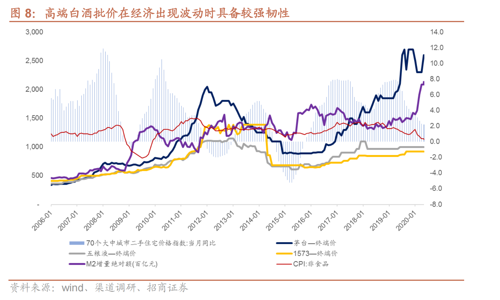 2. 疫情对高端白酒影响相对有限,经济不确定下高端白酒更显业绩稳健,属底仓性质;