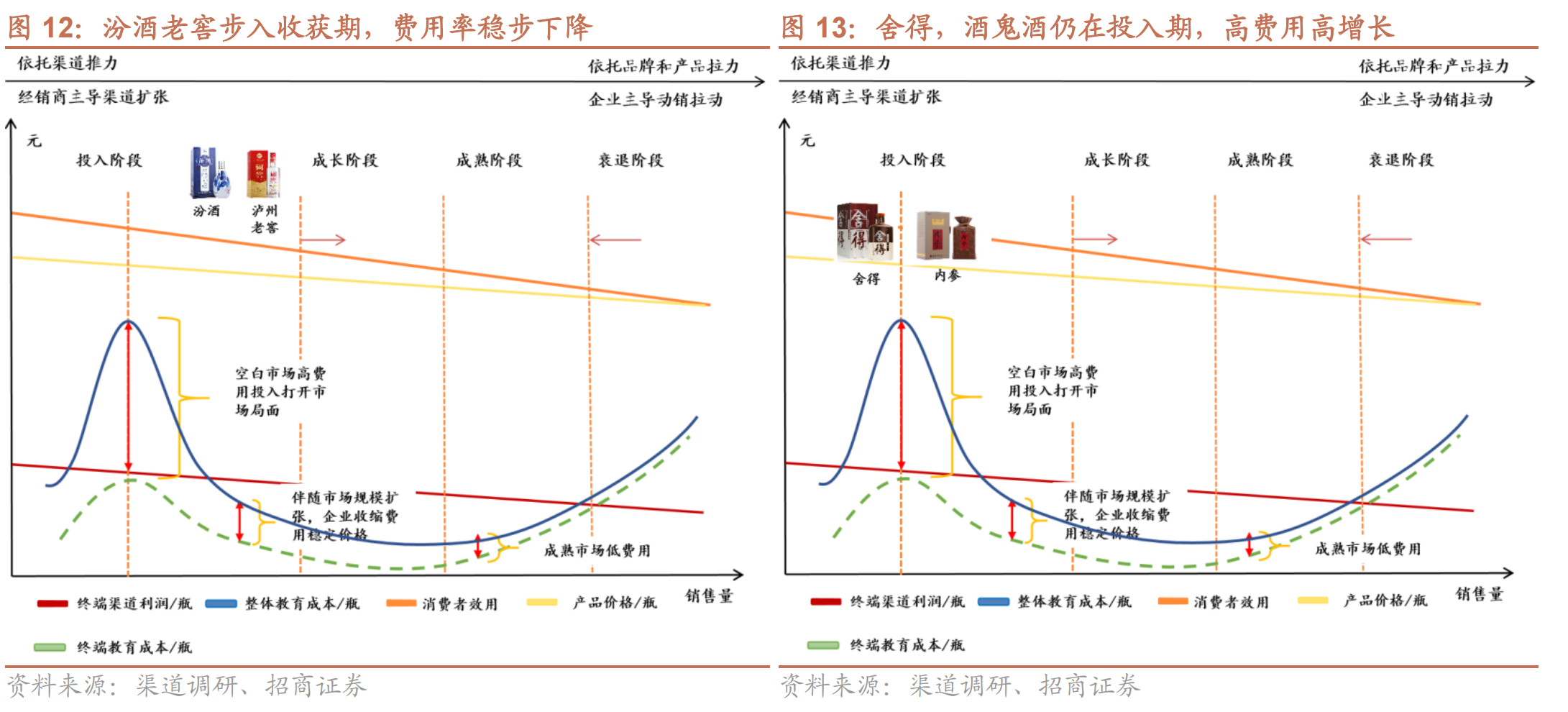 而酒鬼酒,舍得,水井坊在2020年才完成产品和渠道的全面梳理,学习汾酒的渠道直控模式,目前正处于高投入高成长的投入阶段,三家白酒企业在2020年按照一城一商的发展模式,完成了对下线城市的渠道布局。
