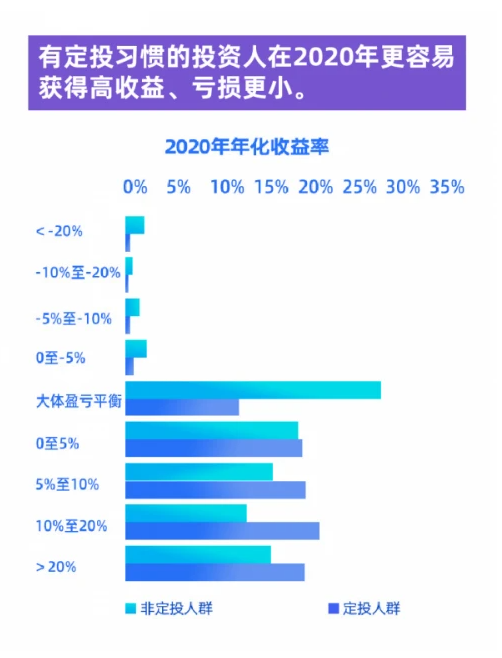 根据报告数据,定投的人在2020年获得了更高收益。