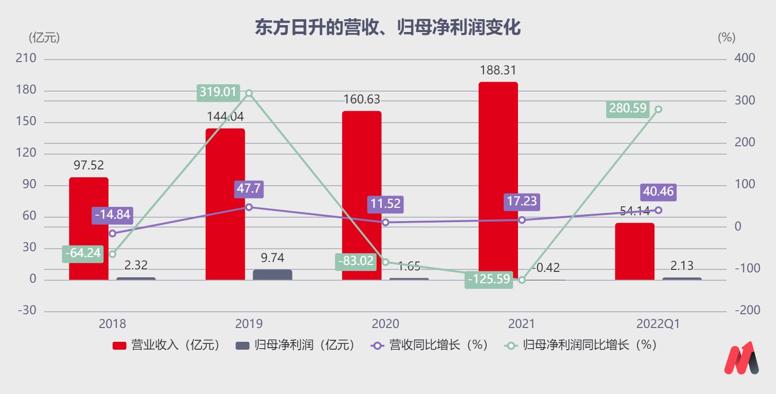 另一方面,东方日升主要布局了电池片、组件环节,并未像隆基、晶澳、晶科等企业实现了产业链一体化的布局,在成本控制方面也弱于这类一体化企业,在原材料持续涨价且涨价压力向下游传导不畅的情况,更容易出现亏损。