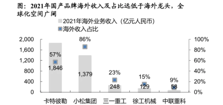 但与卡特彼勒、日本小松两大巨头相比,过度依赖国内市场、海外市场相对薄弱成为中国工程机械企业的普遍问题。在存量竞争格局之下,行业内卷压力不断。