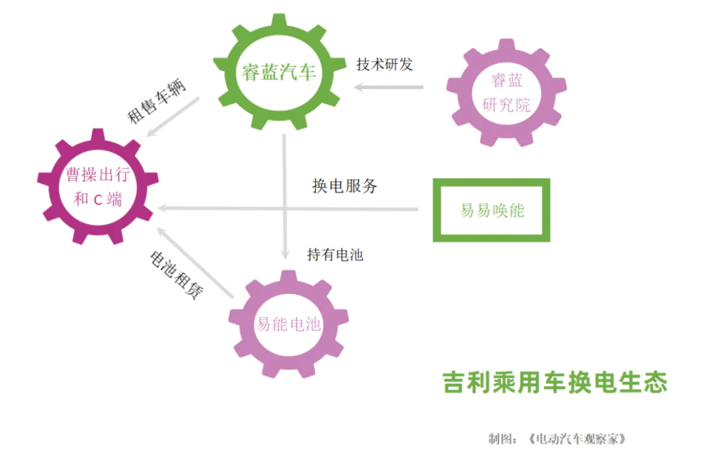 乘用车方面,主要是睿蓝作为换电品牌,易易唤能(易易互联科技有限公司)负责换电站的运营,杭州易能电池管理技术有限公司负责电池资产管理。