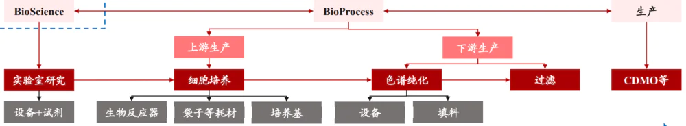制药产业上游增长,研发环节来自于来自于国产替代下市占率提升,量产环节来自于自于下游商业化放量;