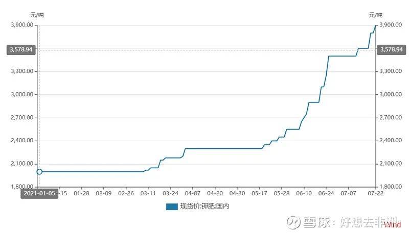 上面为2021年的钾肥与碳酸锂的价格走势图,碳酸锂的价格自4月以来一直高居8.5万以上,钾肥从3月开始,迅速飙升。