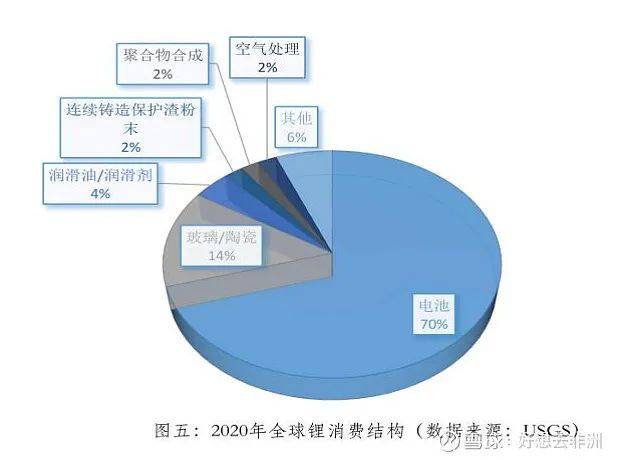 近年来,由于充电锂电池在日益增长的便携式电子设备市场中得到广泛应用,并越来越多地应用于电动工具、电动汽车和电网存储应用,锂在电池领域的应用量显著增加。2020年锂消费结构中电池应用占比达到71%。其次锂矿物可直接用作陶瓷和玻璃应用中的精矿。
