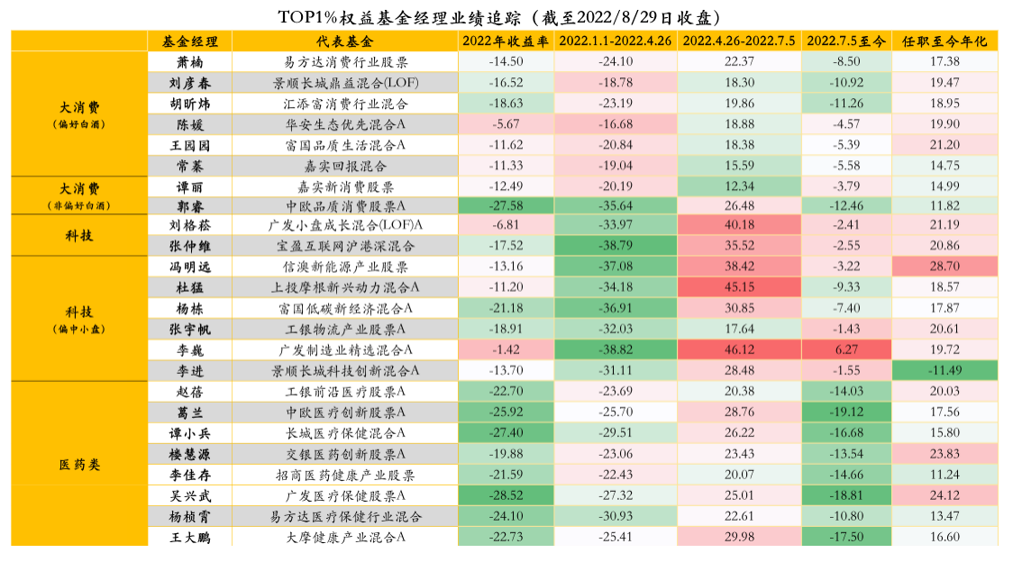 反倒是传统消费基金经理最喜欢抱团的白酒是净值下跌的主要贡献,这也能解释为什么萧楠、刘彦春以及胡昕炜这三位持仓白酒占比较高的基金经理在这两轮下跌中跌幅较大。