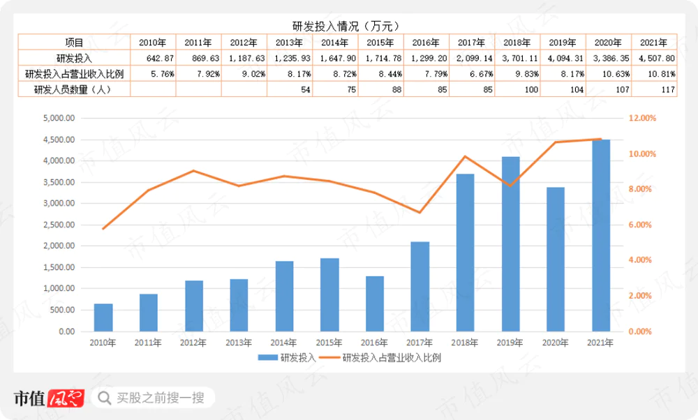 而如果来看研发投入的话,四方达也是舍得投入的:2012年以来研发投入占比营业收入的比重基本保持在8%以上。