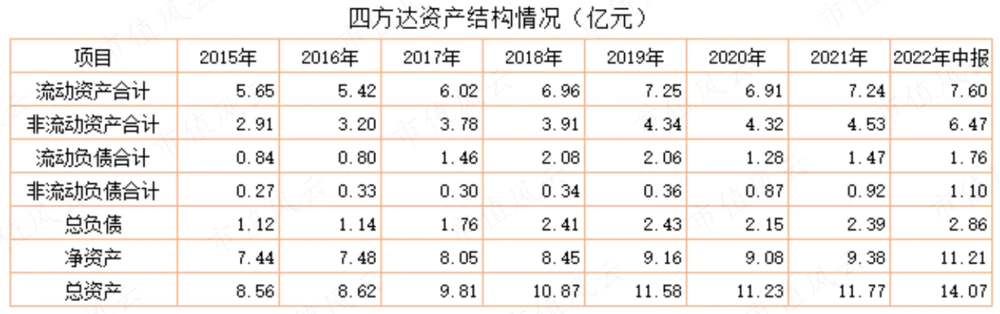 四方达在2022年中报的资产结构,流动资产与非流动资产比较接近,后者在今年上半年增加很快,金额接近2亿元。
