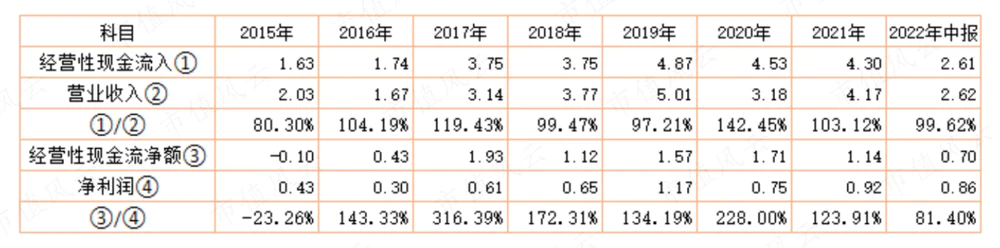 从经营性现金流入与营业收入的比值、经营性现金流净额与净利润的比值来看,2016年以来,公司均保持很好的现金流状态,尤其是经营性现金流净额在2016年至2021年均在100%以上,说明公司经营活动带回的现金流与净利润是相匹配的,甚至优于净利润账面金额,盈利质量很好。