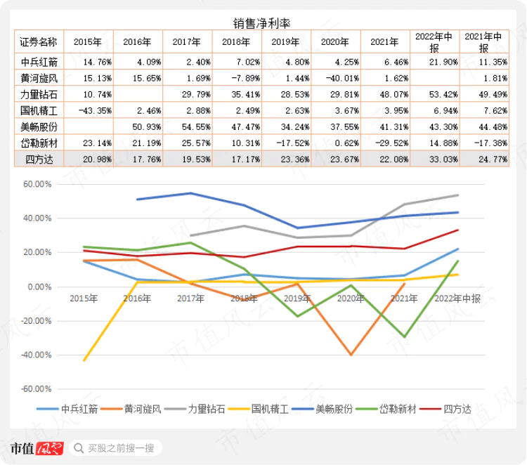 值得注意的是,今年中报保持大幅增长的还有中兵红箭、国机精工、高测股份等。