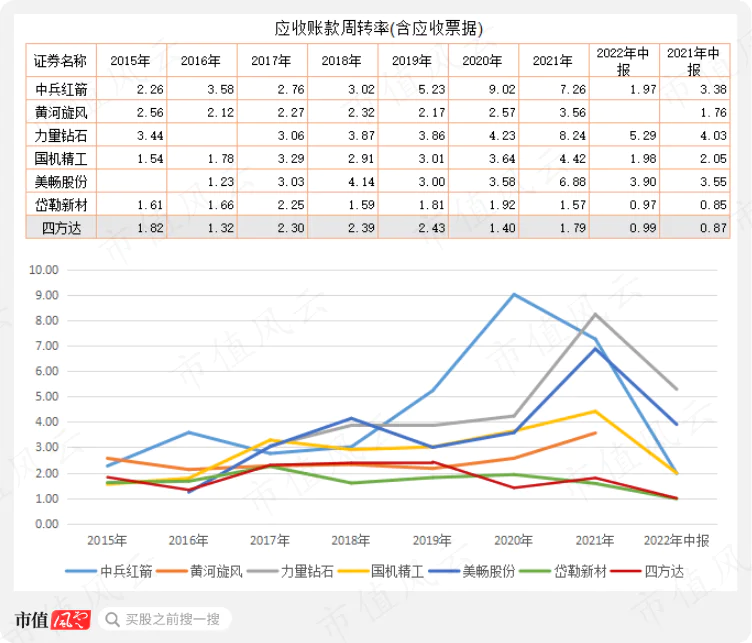 行业景气度的另外一个证明是应收账款(含应收票据)周转率提升,整体看,本部分与四方达对比的6家公司的该指标自2020年开始出现大幅改善。值得注意的是,四方达的应收账款周转率却是逆势下降。