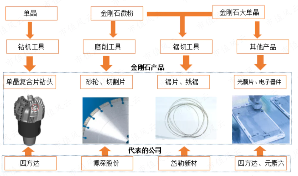 目前国内人工金刚石的制造主要有高温高压法(中兵红箭、黄河旋风、力量钻石等)和CVD法(国机精工、四方达等)。