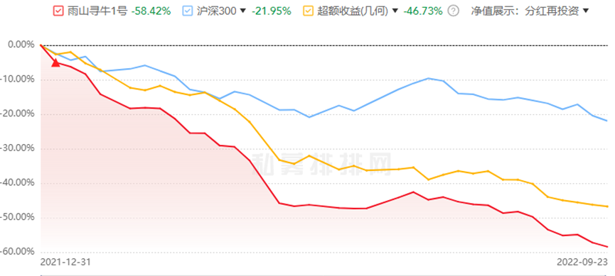 到了2022年,云溪基金的产品更出现腰斩。截至9月23日,年内净值回撤高达58%。