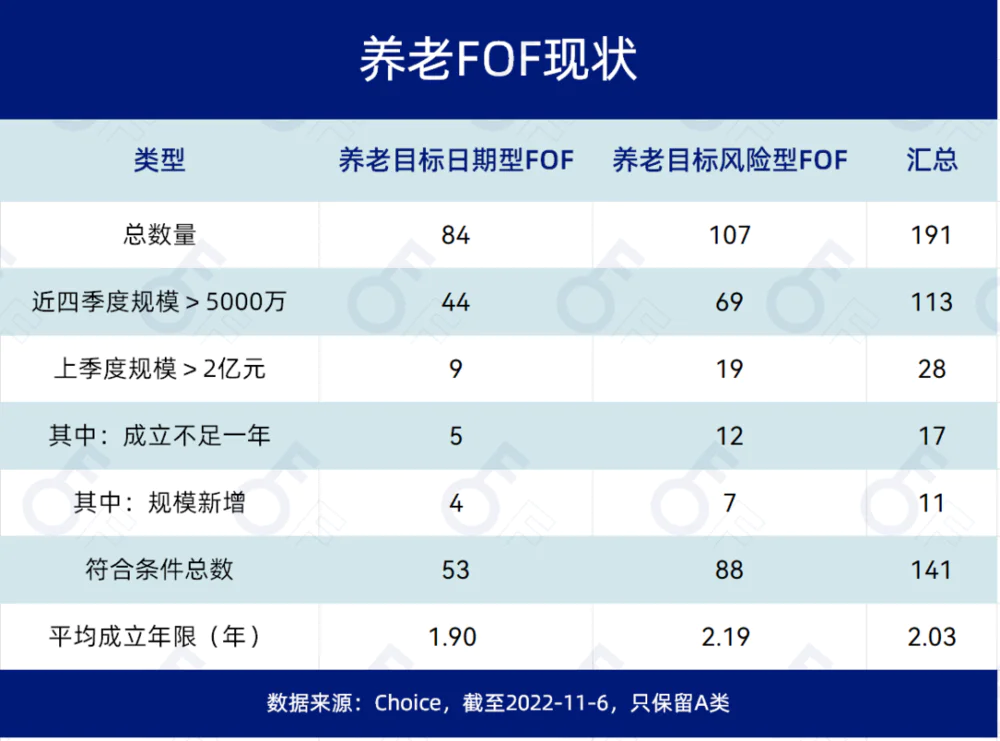 目前,两类养老FOF的总数已经接近200只,平均成立的年限也刚刚达到了两年。