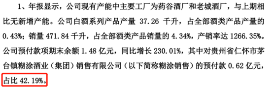 截至2021年底,海南椰岛预付账款1.48亿,其中对糊涂销售预付款0.62亿,占比高达42.19%。