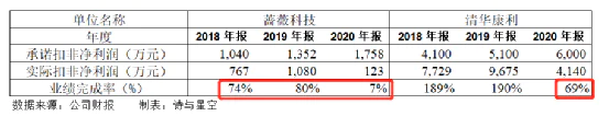 清华康利和蔷薇科技被收购时,原股东曾对2018至2020年度经审计的扣除非经常性损益后的净利润做出承诺。然而这3年蔷薇科技的业绩均未达标,清华康利在最后一年业绩未达标。