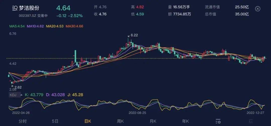 (梦洁股份股价,日K。数据来源:市值风云APP最新5.0版)