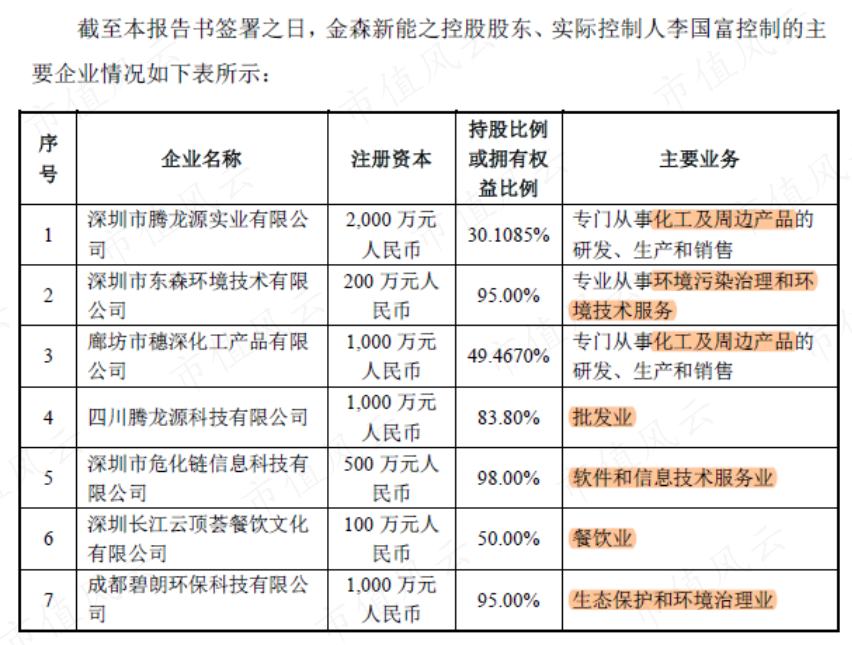 据悉,长沙金森的实控人李国富是应用化学行业出身,拥有多家企业。但从经营范围来看,这些企业似乎与新能源关系不大。