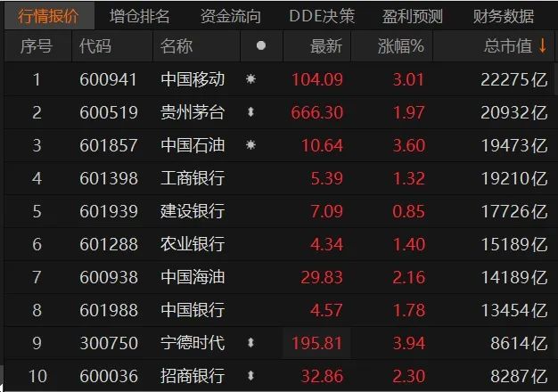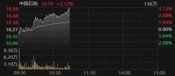 “中字头”全线走强,中国石油一度涨超3%,总市值跃居A股第三位
