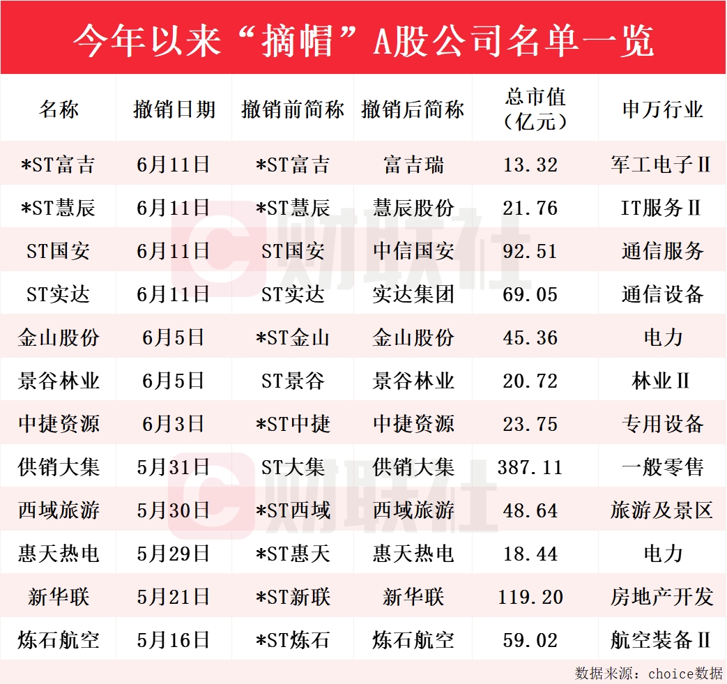 *ST富吉、*ST慧辰、ST国安和ST实达齐发“摘帽”公告,年初迄今累计12家上市公司官宣“摘帽”